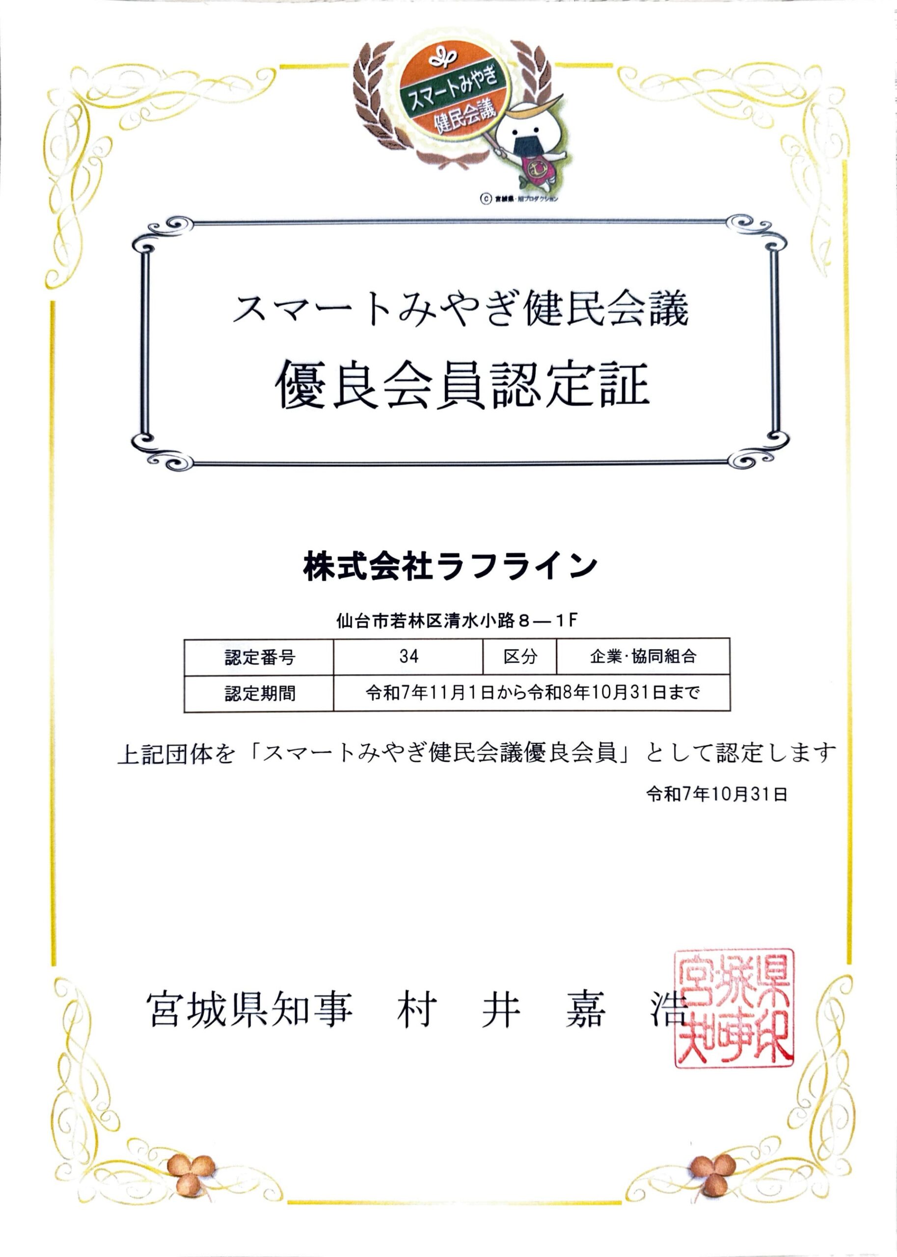スマートみやぎ健民会議優良会員に認定(更新)されました